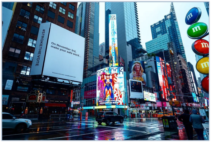时代广场位于百老汇大街、第七大道和42街交叉三角地,财富与艺术在这里牵手。